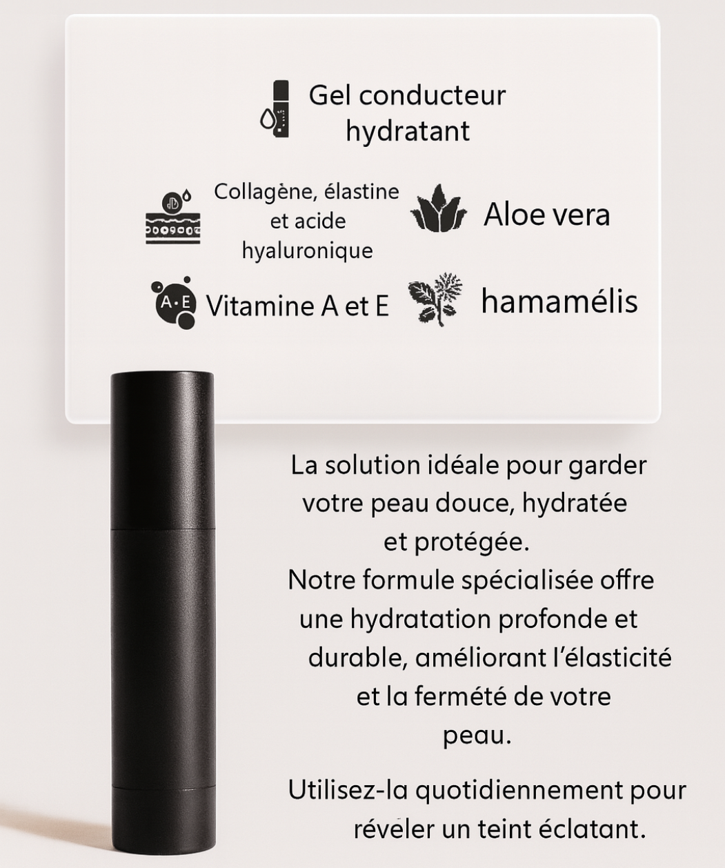 Pour optimiser les résultats de votre soin, nous vous recommandons d’utiliser une crème hydratante ou un sérum adapté à votre type de peau en complément de l’appareil. Cela permet une meilleure absorption des actifs et renforce l’efficacité du traitement.