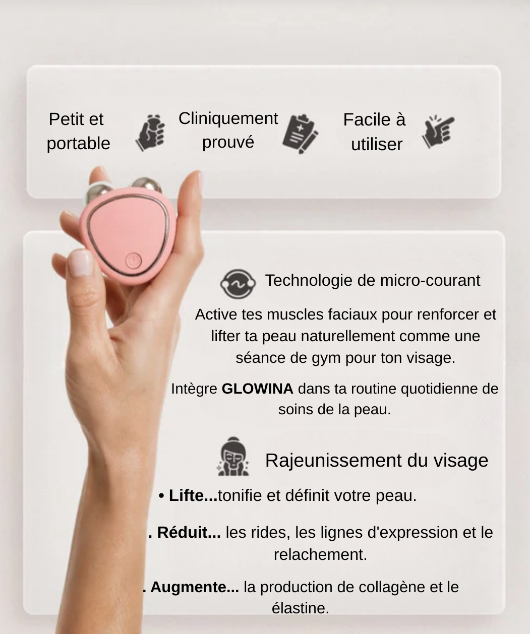 Les micro-courants raffermissent ta peau et révèlent son éclat, naturellement.