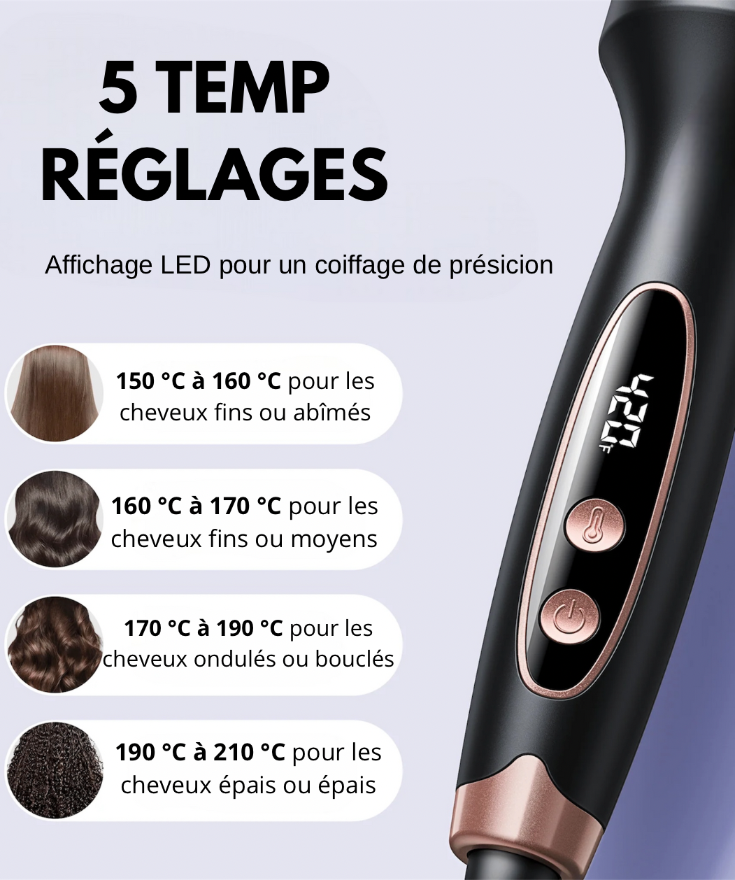 - Compatibilité : Tous types de cheveux (fins, épais, bouclés)