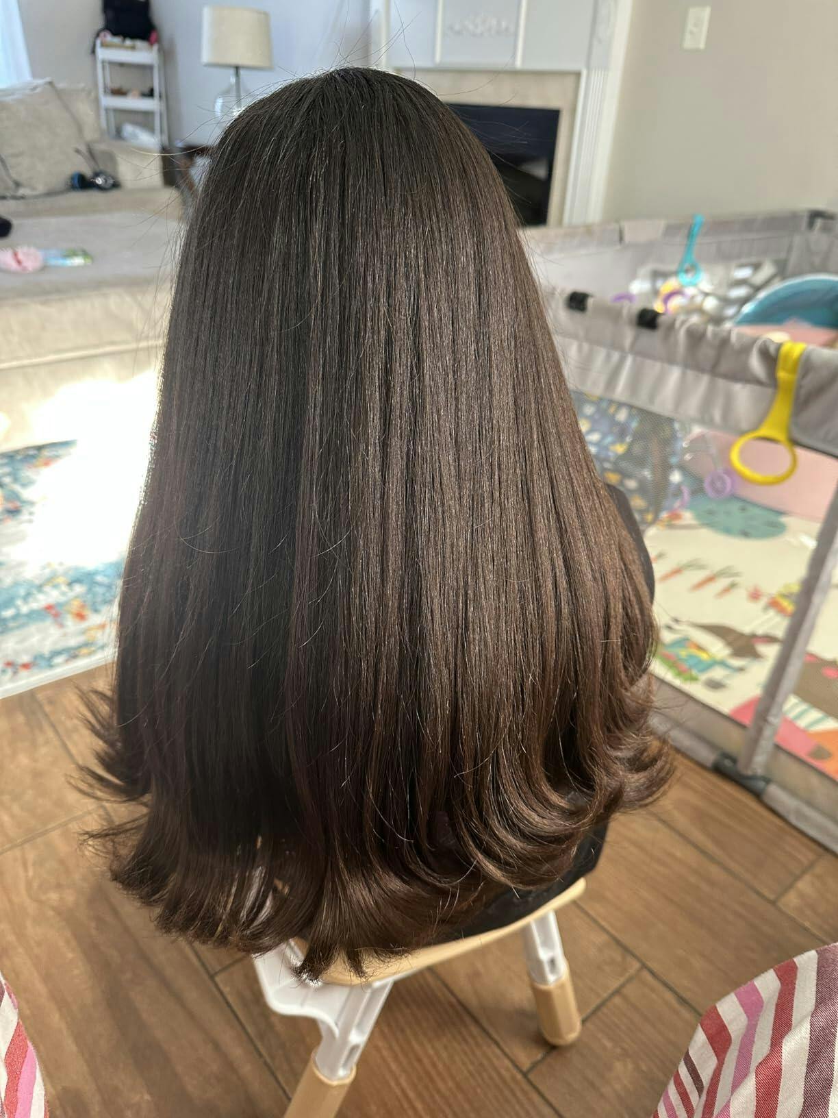 Découvrez la différence spectaculaire des cheveux lissés, brillants et disciplinés en quelques minutes seulement, pour un résultat professionnel validé par nos clientes.